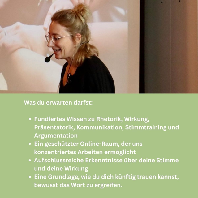 Deine Stimme zählt - lass uns für kommunikative Sicherheit an deiner Rhetorik und Wirkung arbeiten!